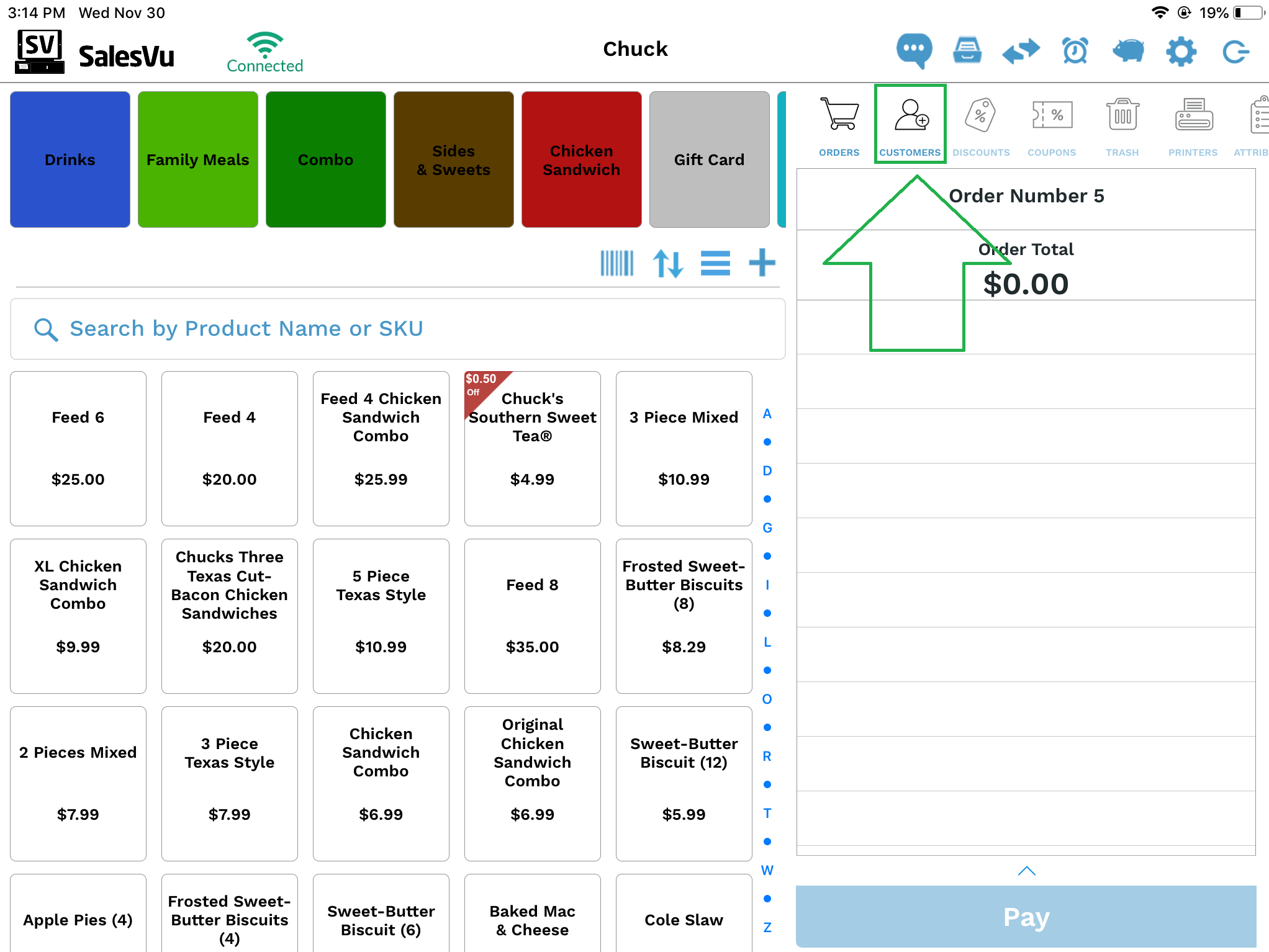 From the SalesVu POS app, you can easily add a customer to your order. To do so, follow the steps below: