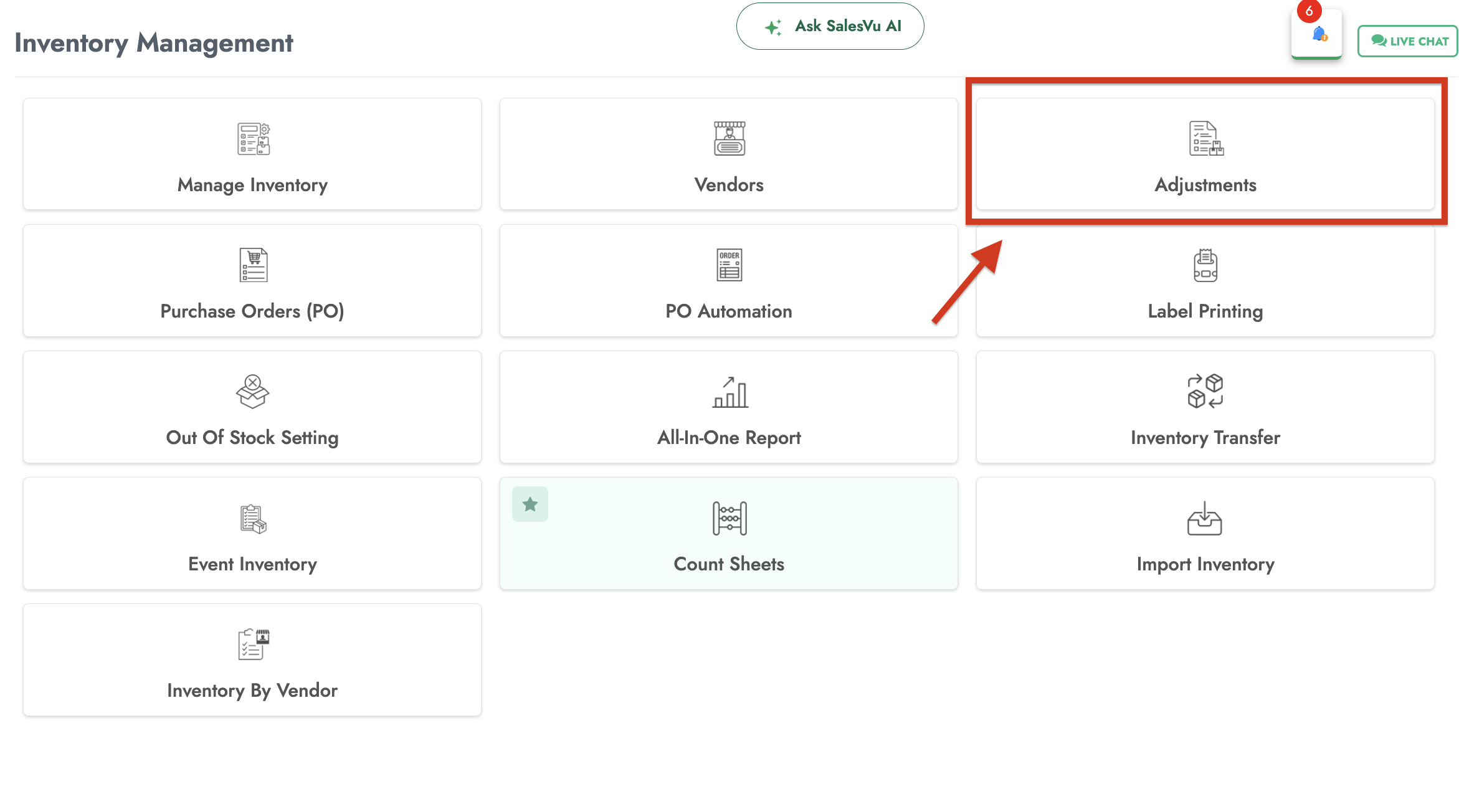 2. Click on 'Inventory'