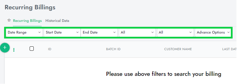 3. Select 'Advance Option' and use the filters to locate the billing of your choice