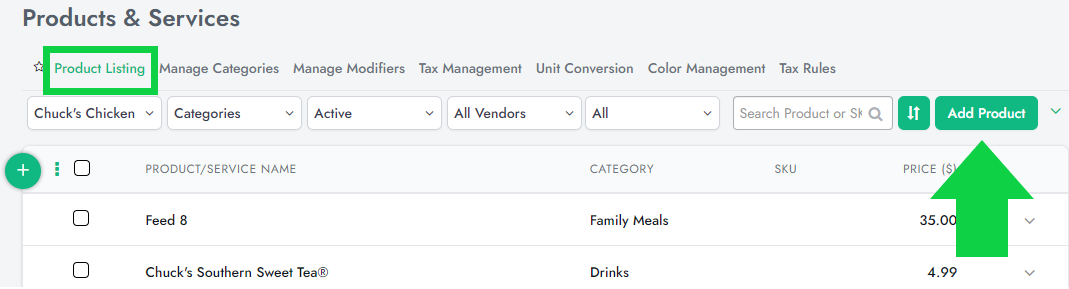 3. Enter the product name ('case' in our example), price, category, tax, etc