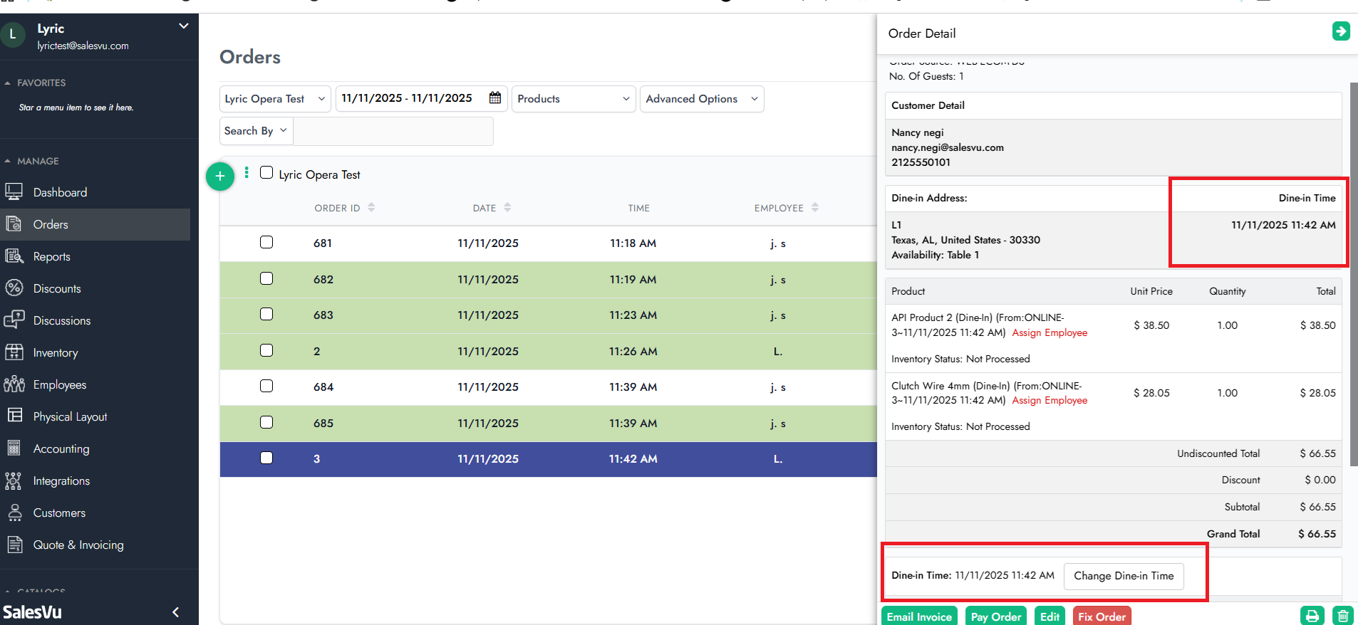 In your Order Report, you’ll see the dine-in time and can edit it if needed.