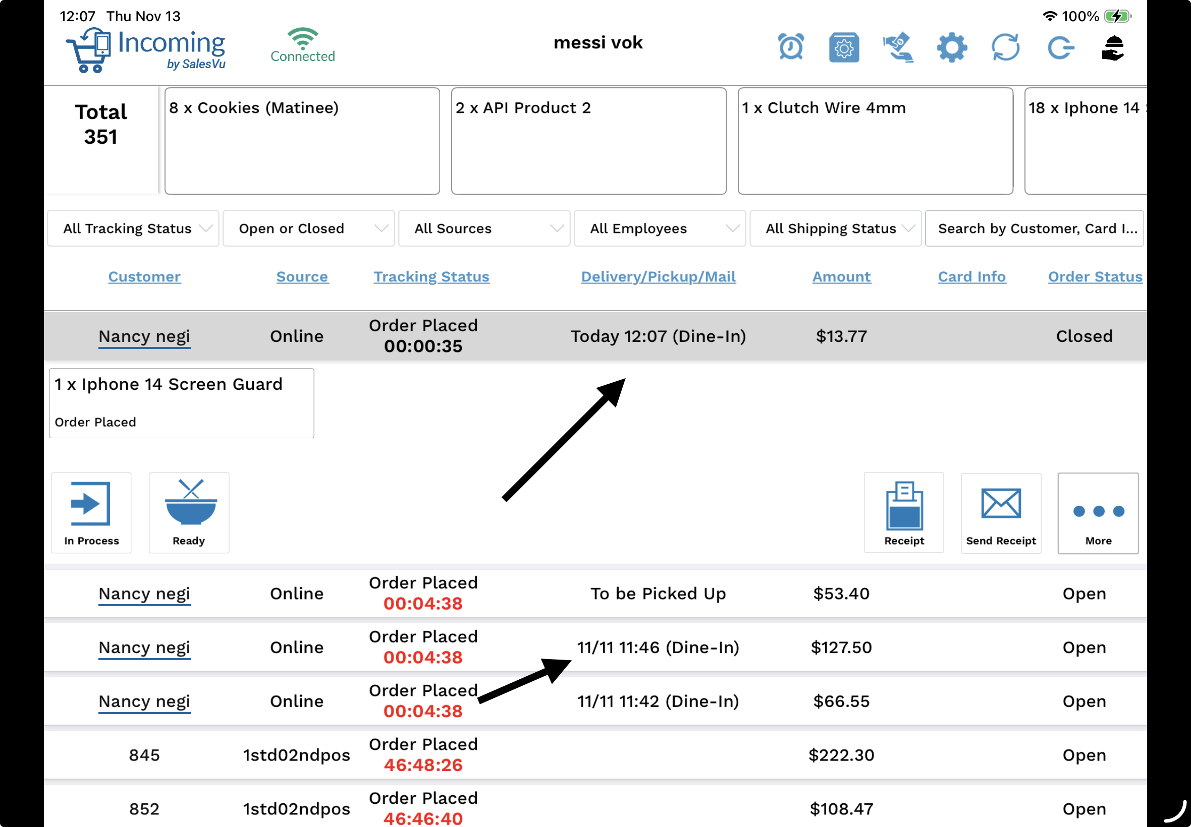 Once the order is placed, the chosen dine-in time will appear on reports and in the Incoming (Kitchen Display) app so your staff knows exactly when to prepare the order.