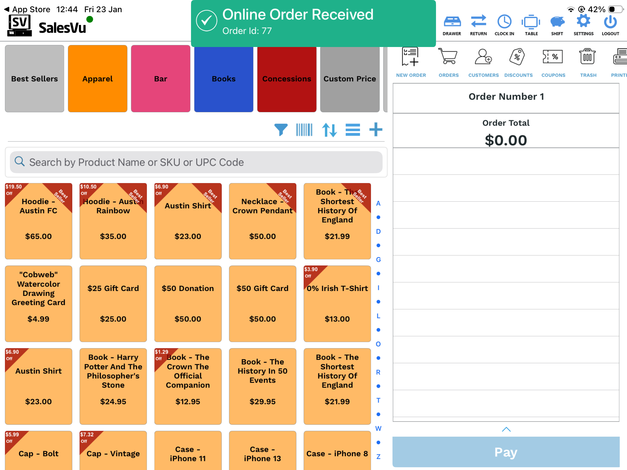 This article explains how to receive and manage online orders placed on your website directly on your SalesVu POS. Online orders can appear on the POS app, the Incoming (Kitchen Display) app, and can also be printed to a kitchen printer.