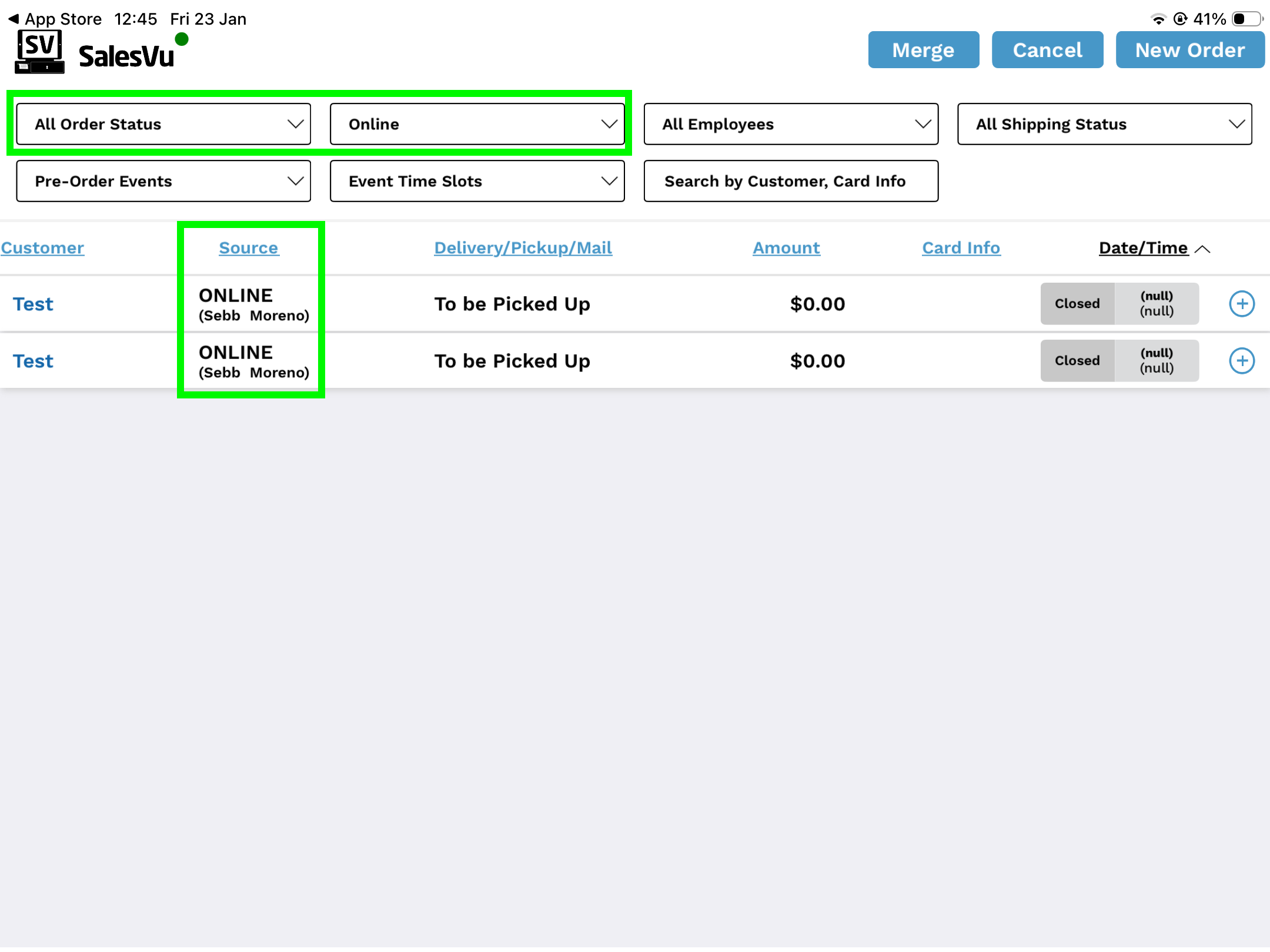 Apply the Online filter to view only online orders, Or select All Sources to see both in-store and online orders