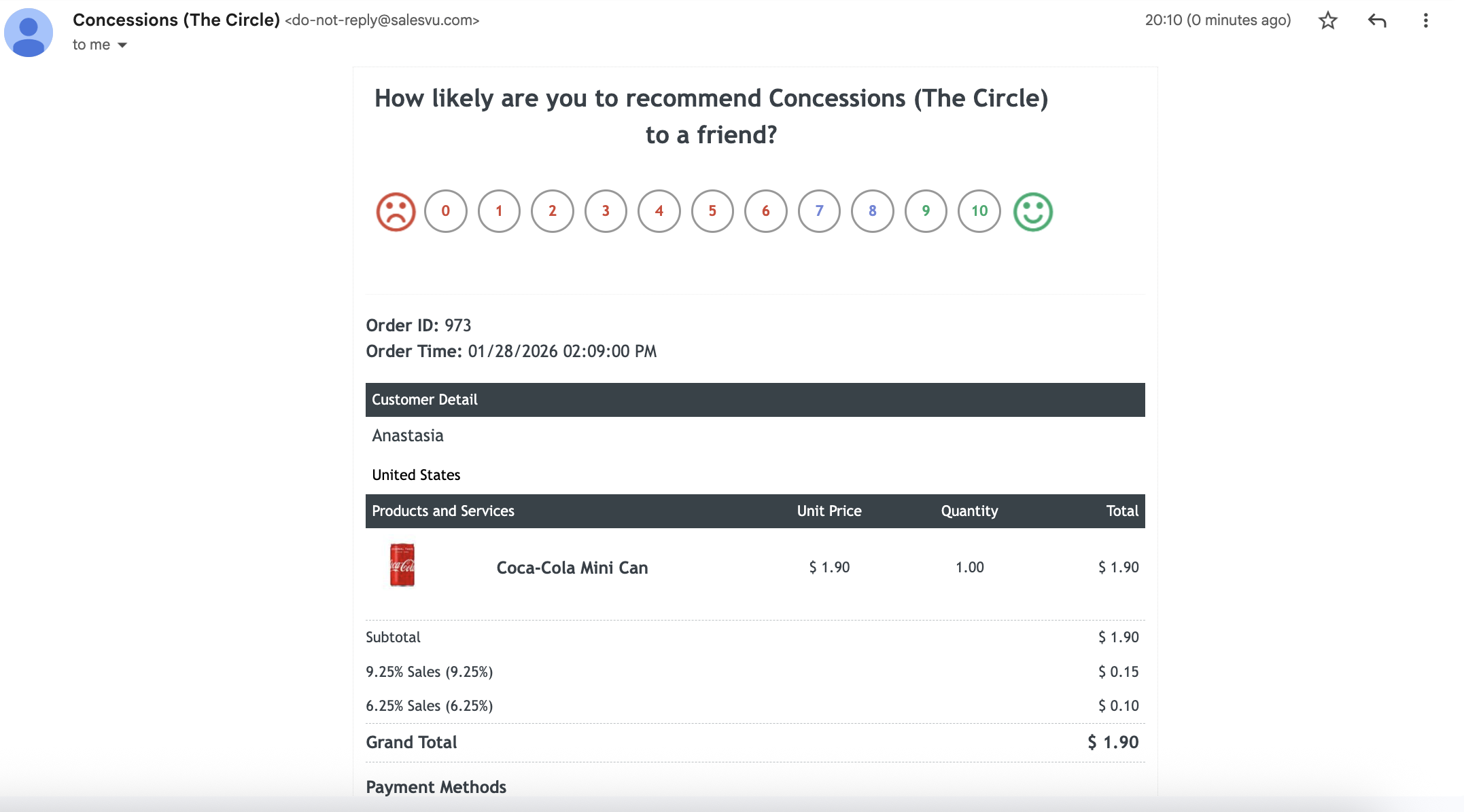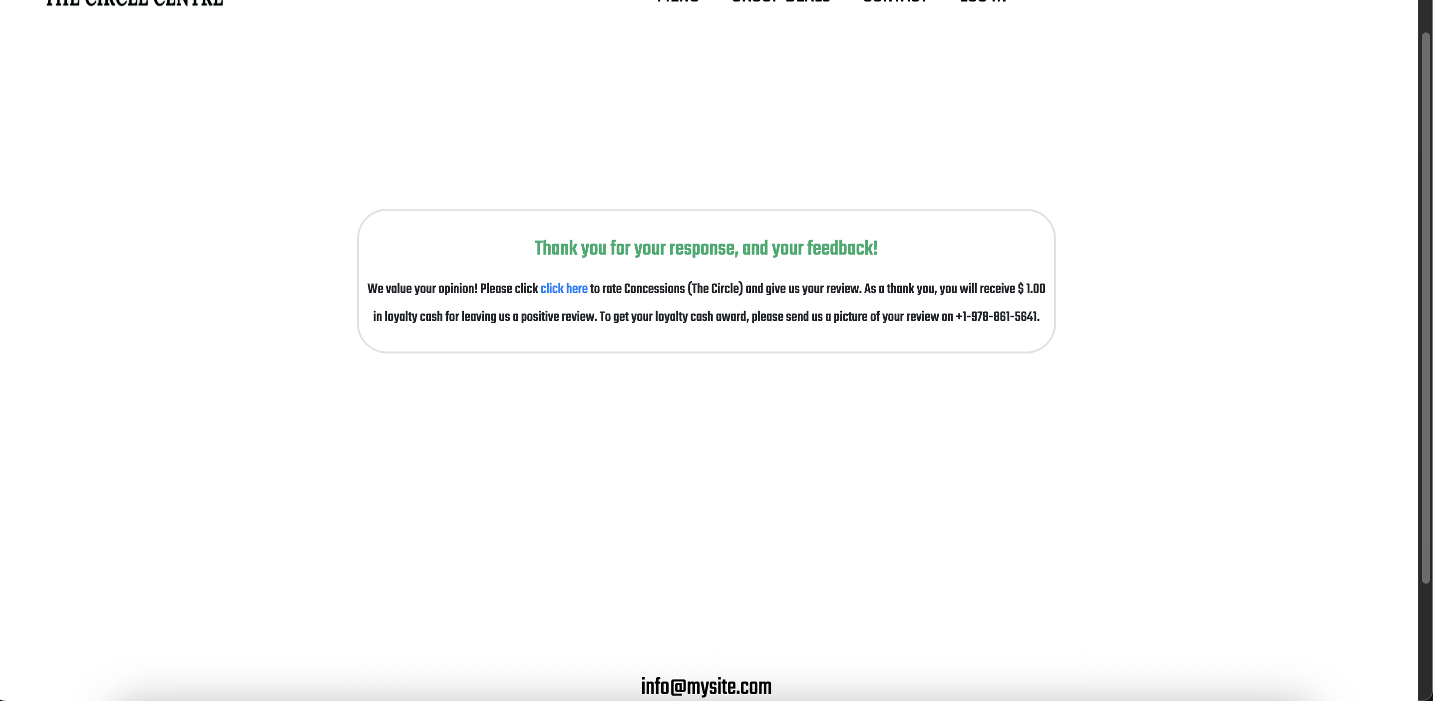 Once customers review your business via the email, they will first be redirected to your website to leave a text review. After submitting it, they will be offered a link to leave a review on Google, Yelp, or Facebook, along with the loyalty reward (if included in your message template).