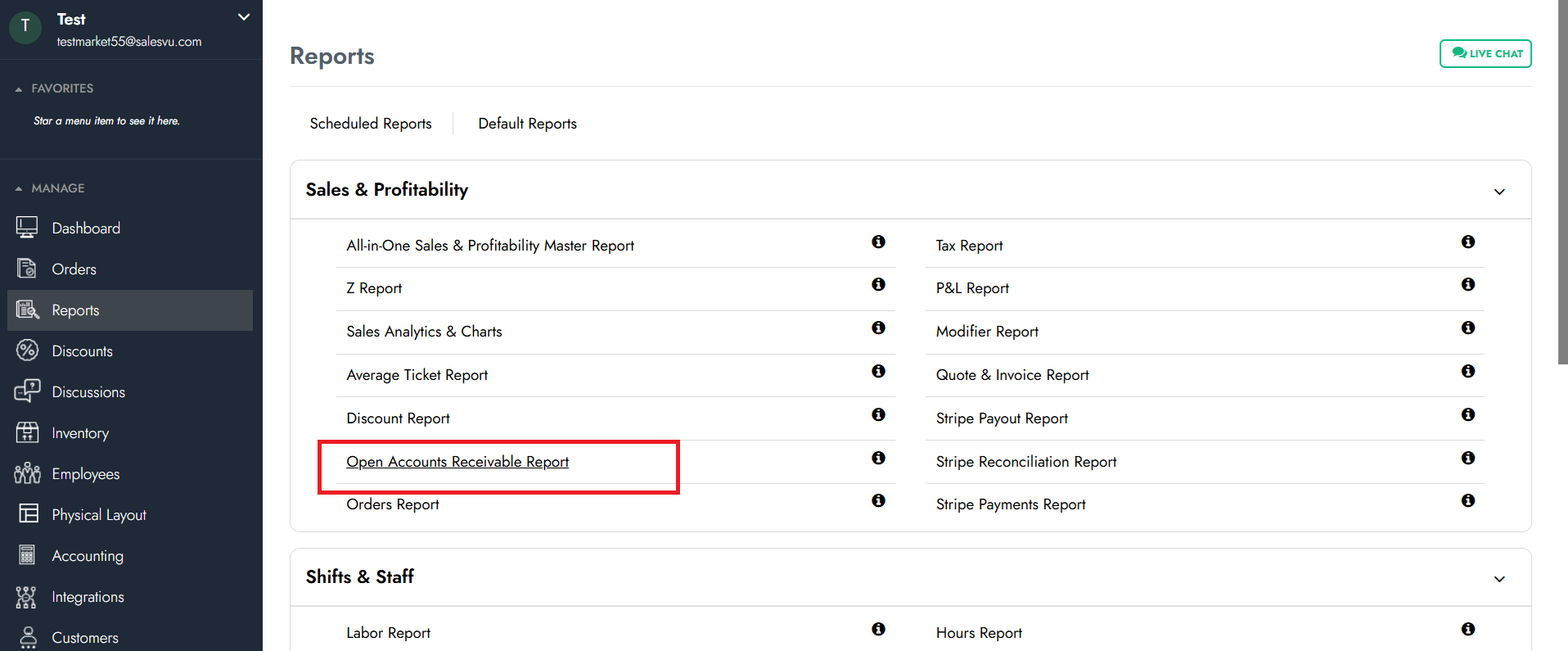Under Sales & Profitability, select Open Accounts Receivable Report