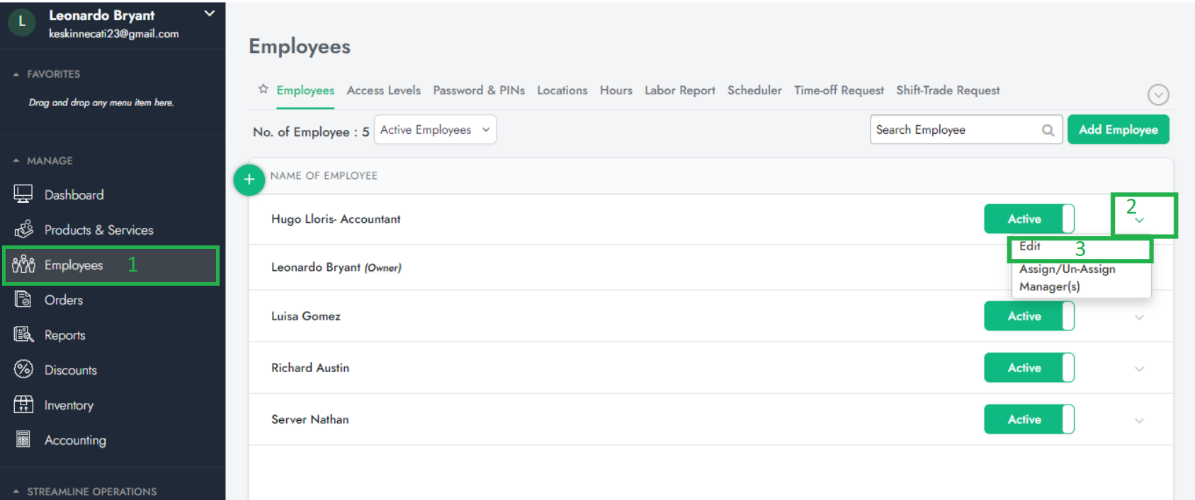 3. Click on the drop-down menu next to the employee name and Click on "Edit"